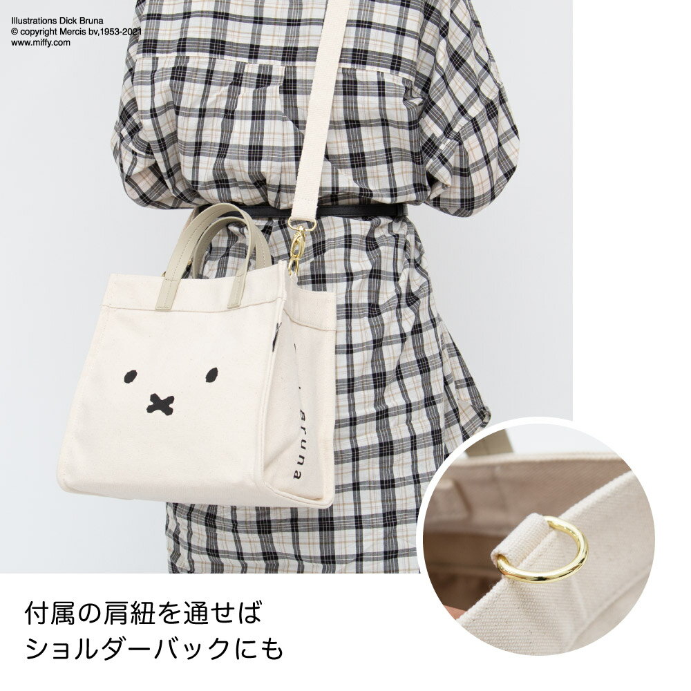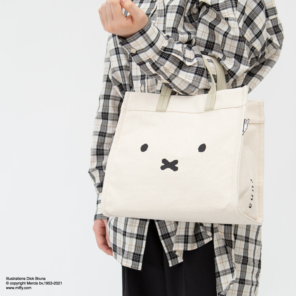 ■サイズ:約W28×H24×D14cm(持ち手を含まない) ■素材:綿 ■容量:約7L ■内ポケット4つ[その他のミッフィーグッズはこちら] 【メール便対象商品です(送料無料)】 【日本郵便のゆうパケットでお届けします】 【メール便(ゆうパケット)はポスト投函です】 【メール便のみの発送となりますので代引き・宅急便は選択できません】 ミッフィーフェイスが可愛い2wayショルダーミニトートバッグ どんなスタイルにも合わせやすいシンプルなキャンバス生地。