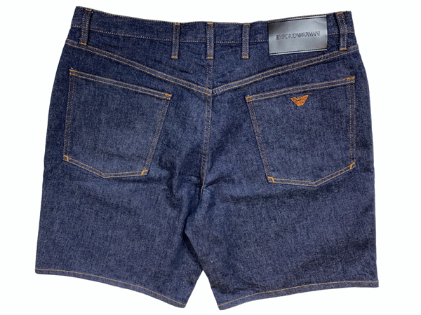 【ブランド】EMPORIO ARMANI エンポリオアルマーニ 【商品名】ロゴマーク プレート 付き メンズ ストレッチ デニム ショート パンツ ハーフパンツ バミューダ パンツ 【型番】3K1PS1 1DY8Z 0941 DENIM BLUE【買い付け場所】イタリア、アルマーニ直営アウトレット 【状態】新品、100%本物保証、【色、素材】インディゴデニムジーンズ色、コットン90%、ポリエステル8%、ELASTAN2%、 【SIZE】メンズ52サイズ(日本LLサイズ程度)、腰幅48 cm、股上30 cm、股下22 cm、裾幅31 cm、※平置き計測。